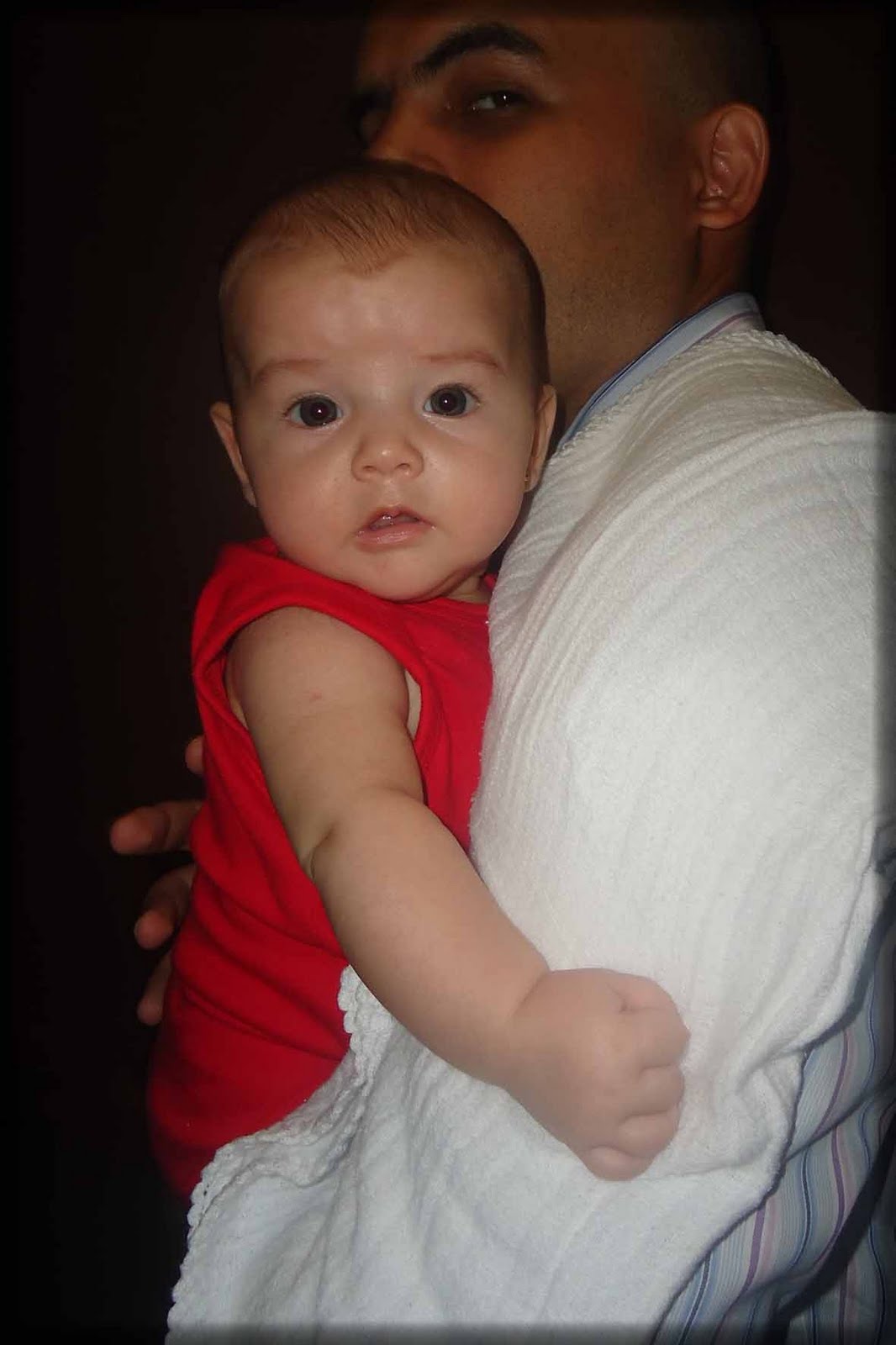 * e esse colo do papai, vejam como já estou enorme e como sou branquinha também, consigo ser mais branquinha que a mamãe.